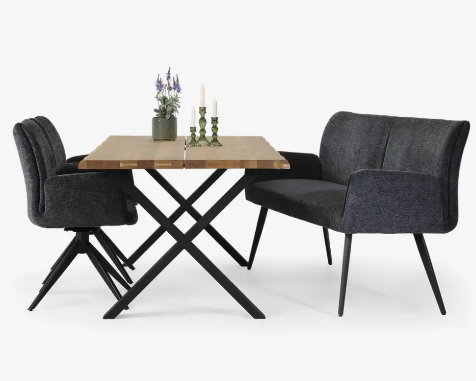 Prøv en anden måde at sidde ved spisebordet, vi har også denne spisebordsbænk i sortiment, og den tilbyder en særdeles behagelig siddekomfort. Bænken kan både benyttes i spisestuen og i det store køkken. Spisestuebænken er fremstillet med en ekstra polstring i ryggen, det giver en god opretsiddende siddekomfort, men stadig komforten som gør den dejlig at sidde i, selv i længere perioder. Bænken er den del af en serie på 3, hvor der også indgår henholdsvis en spisestuestol med armlæn, samt en spisestuestol. Serien er fremstillet i det samme kraftige møbelstof og kan kombineres på kryds og tværs. Bænken er fremstillet i et kraftig gråt møbelstof. Den kræver ingen vedligeholdelse, og aftørres med en klud vredet op i vand. Sæde og ryg kan også støvsuges. Højde til overkant armlæn 63 cm.