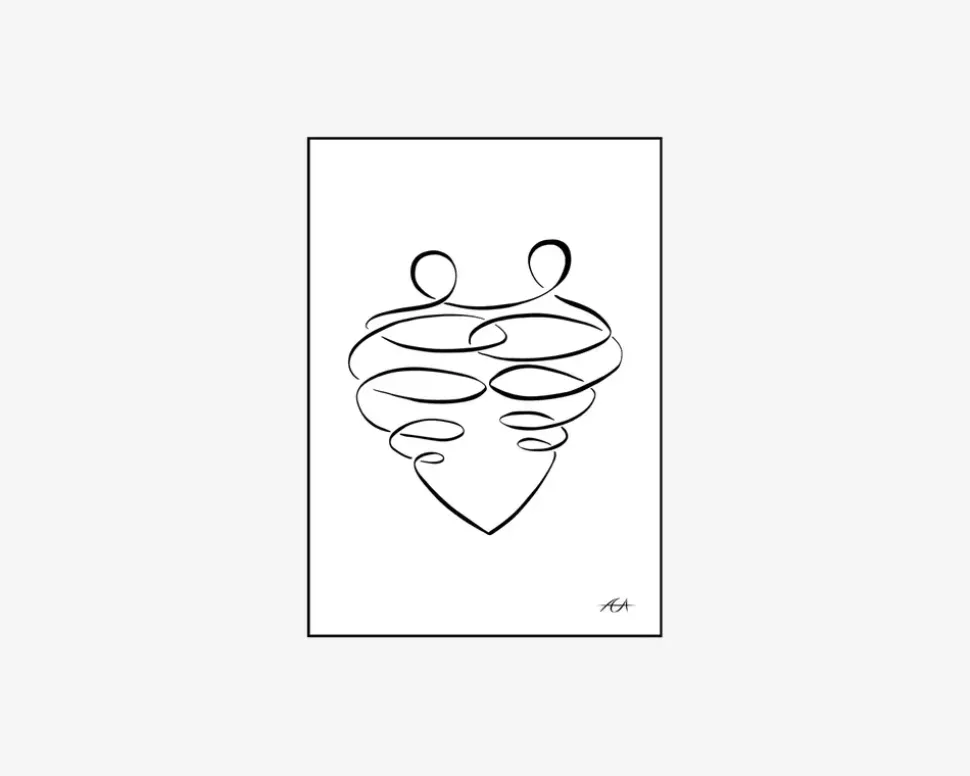 Plakater fra AE Art er en personlig gave til dig selv eller én, som du har kær. En gave, der kan gøre en forskel. AE Art’s kunststil – Braidline art – fletter symbolik med positivitet. Stregen fletter over og under sig selv i hele tegningen og forbinder symbolerne og betydningen. Alle plakaterne har symboler med meningsfuld fokus, i form af anerkendelse og værdsættelse. Plakaterne er inddelt i 3 forskellige kategorier: Egenskaber, interesse & hobby, relationer & særlige øjeblikke. Alle designs er håndtegnet af Amanda selv og derefter trykt på et lokalt trykkeri, der er certificeret.Udforsk de mange designs og find netop det symbol der skaber personlig værdi for dig, eller én som du har kær.A5 kortene er velegnede som et personlig kort, der kan vise din anerkendelse og værdsættelse hos modtageren. Et personligt alternativ til det klassiske kort. A5 kortene er også en dekorativ størrelse til at hænge på væggen, hvis man ønsker at kunsten ikke skal tage for meget fokus, men blot skal give et personligt udtryk. • Kategori: Relationer & særlige øjeblikke• Passer til ramme i cm: 15 x 21