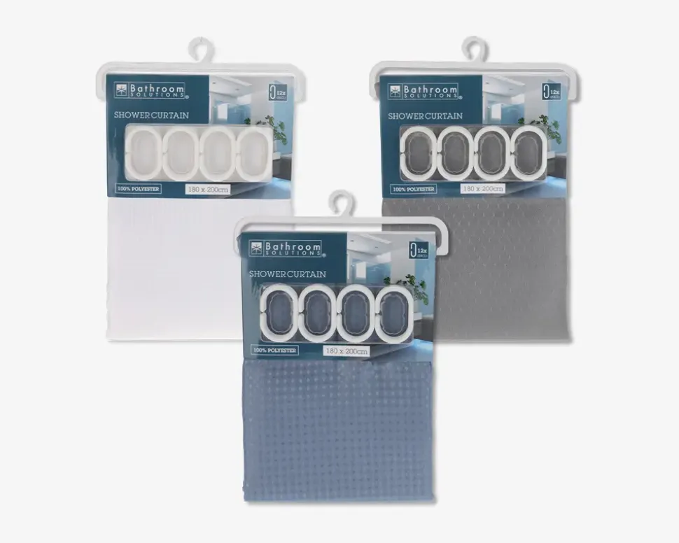 Dette badeforhæng kommer i vaffel design. Badeforhænget er fremstillet i polyester og tørrer hurtigt. Bemærk at de kommer assorteret, købes enkeltvis og at der ikke kan vælges farve ved køb i webshoppen.BEMÆRK, at der ikke kan vælges farve ved køb i webshoppen.