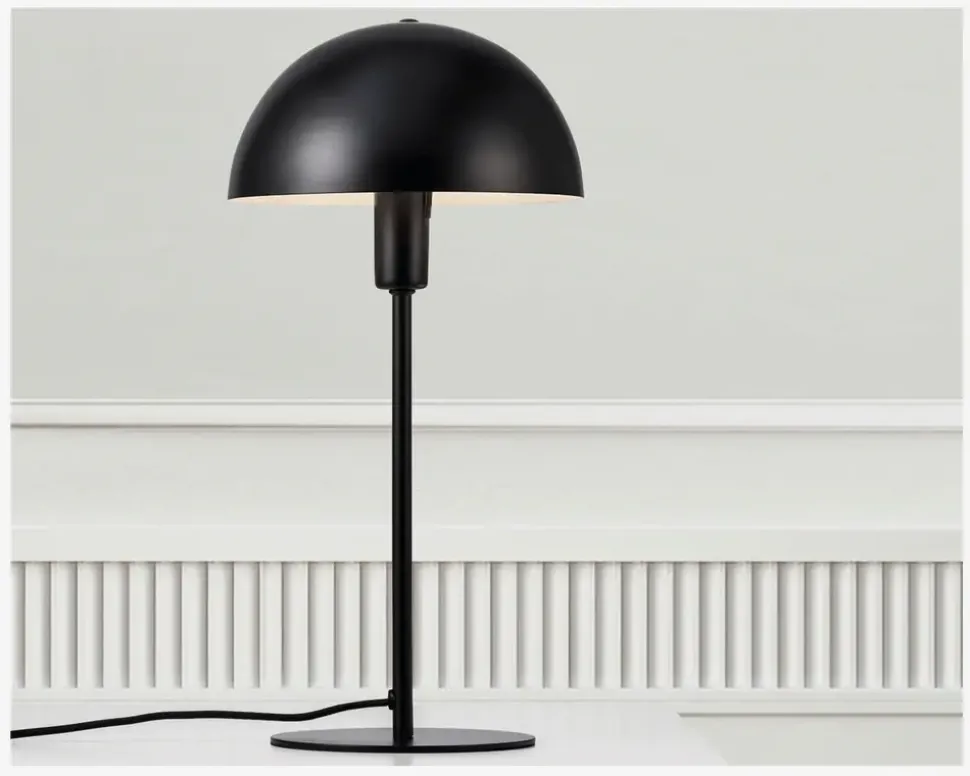 Ellen er et tidsløst og enkelt nordisk design. Det flotte runde kuppelformede look står flot i kontrast til det lette stel og giver hjemmet et bredt og hyggeligt lysfelt.Anvend lampen alle steder i hjemmet – Fra skrivebordet til læsehjørnet i stuen.Fuldend din indretning med andre lamper fra samme serie.• Mål i cm.: H.40,5 x Ø.20• Materiale: Metal• Farve: Sort• Fatningstype: E14, maks 40W• Ledningslængde: 150cm • Ekskl. lyskilde• IP-Kode: IP20
