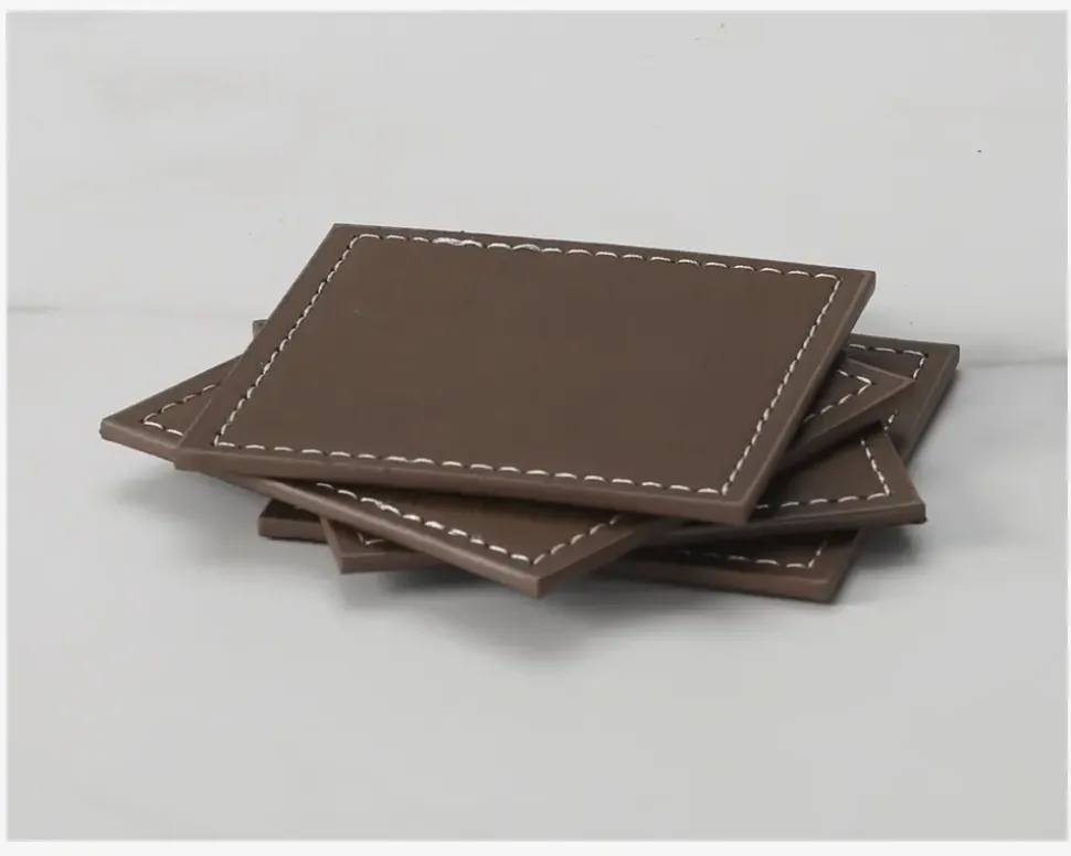 Coaster i PU der har et enkelt design og som passer i ethvert hjem. Kommer i en pakke med 4 stk. og hjælper med at beskytte bordpladen.