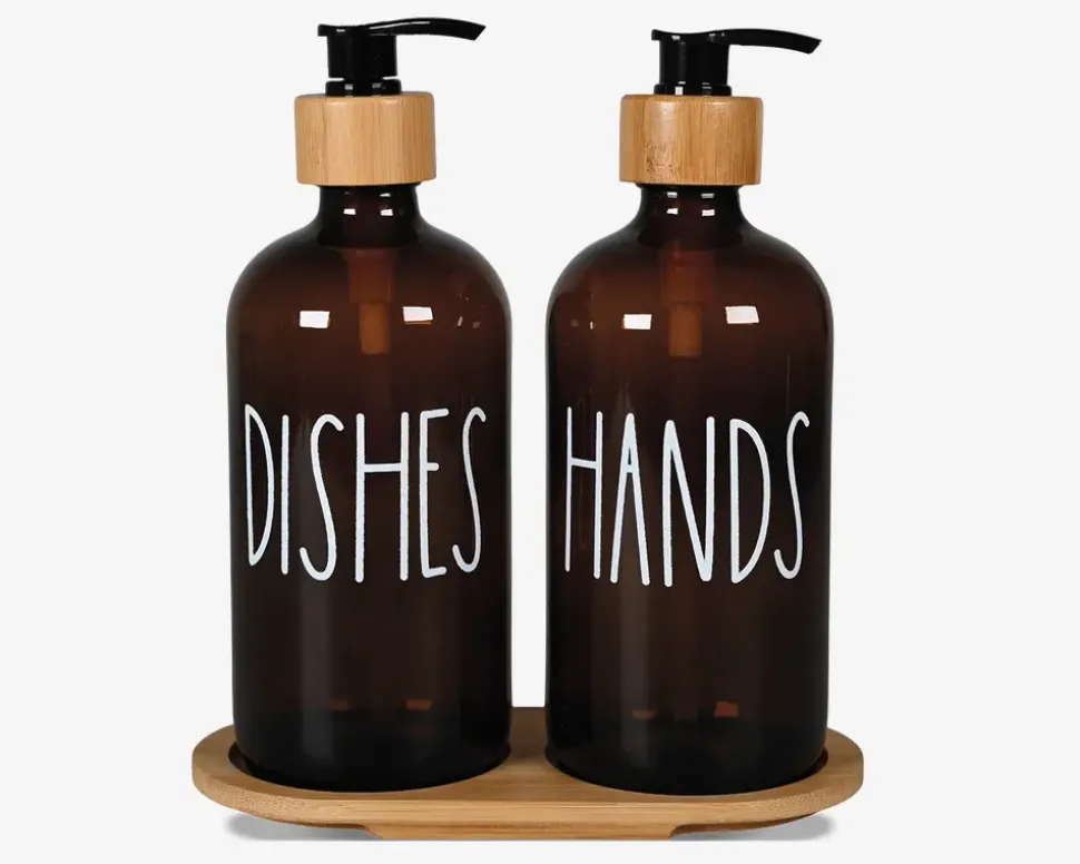 Hold dit køkken organiseret med dette praktiske sæbedispensersæt. Sættet indeholder to beholdere – én til sæbe og én til opvaskemiddel – så du nemt kan holde styr på dine daglige rengøringsrutiner. Beholderne er nemme at genopfylde og sikrer en jævn dosering af sæbe eller opvaskemiddel, så du undgår spild.