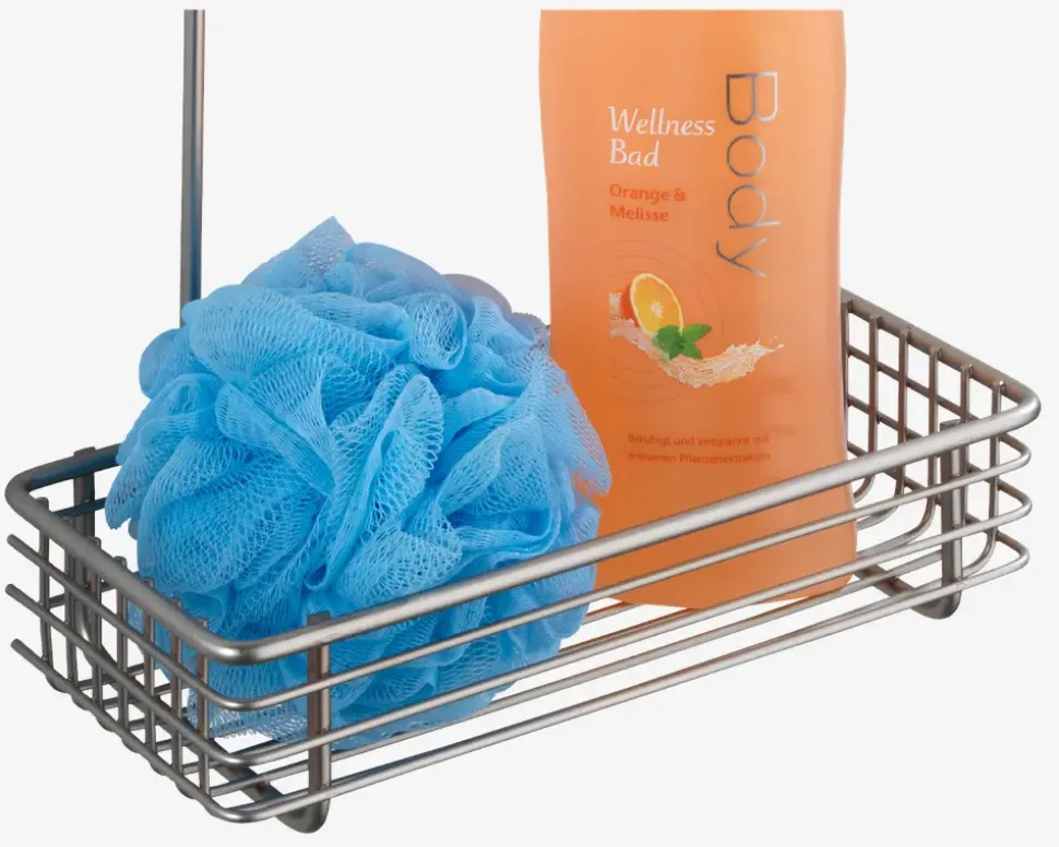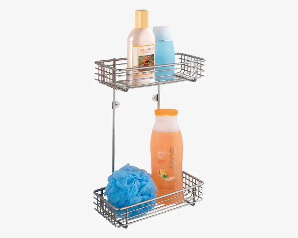 Det kan være svært at vide, hvor man skal gøre af shampoo, balsam og meget andet når man står med sæbe i håret. Med denne praktiske dobbelt brusekurv får du mere opbevaringsplads i brusekabinen til diverse badesæber. Hylden er udført i stål med kromlook og leveres inkl. skruer og plugs.