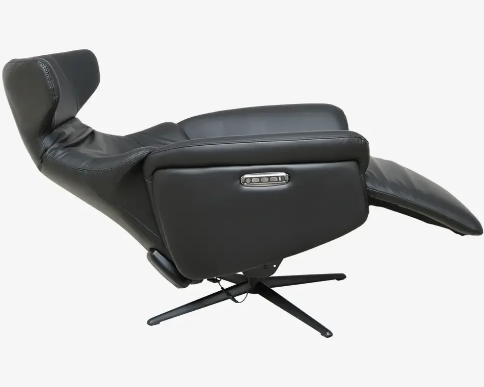 Super lækker drejestol i et flot design og en fantastisk kvalitet. Stolen har fuldautomatisk eldrevet motormekanisme og er med batteri. dette betyder at stolen kan lades op og kan køre uden ledning tilsluttet. Stolen her har et batteri der kan afmonteres, hvilket betyder at du aldrig skal have ledningen tilsluttet stolen, men kan lade batteriet op hvor det nu er mest hensigtsmæssigt. Derfor kan denne stol stå helt frit i stuen uden ledning man kan falde over. Efter en fuld opladning kan den holde strøm i ca. 15-20 dage, alt efter hvor meget den bliver brugt. Stolen er med indbygget fodskammel hvilket er meget pladsbesparende, da skamlen ikke står i vejen hele tiden, når man ikke har brug for den. Stolen her er inklusiv 3 motorer, 1 til rygregulering, 1 til indstilling af fodskamlen og 1 til regulering af nakkestøtten. Alt dette reguleres med betjeningen som sidder på siden af stolen. I betjeningen er der også USB stik og C-stik, så man kan oplade sin mobil og andre enheder mens man sidder i stolen. Stolen er monteret med sort okselæder på alle slidflader og har en flot sort lakeret metalfod. Stolen har formstøbt koldskum i sædet, hvilket giver en fantastisk siddekomfort og en meget lang holdbarhed.• Inkl. indbygget fodskammel• Dreje og vippefunktion• Elektrisk, fuldautomatisk motormekanisme• Lækkert sort okselæder på alle slidflader• Fantastisk siddekomfort• Regulerbar nakkestøtte• Sortlakeret metalfod• Mål i cm: B.75 x D.85 x H.46/114