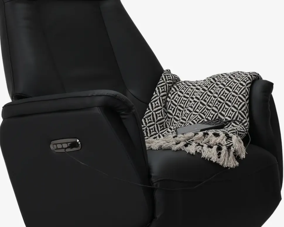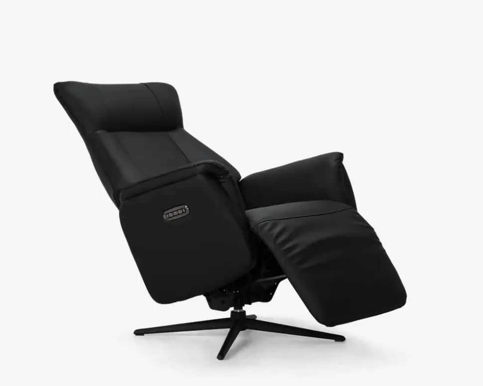 Super lækker drejestol i et flot design og en fantastisk kvalitet. Stolen har fuldautomatisk eldrevet motormekanisme og er med batteri. dette betyder at stolen kan lades op og kan køre uden ledning tilsluttet. Stolen her har et batteri der kan afmonteres, hvilket betyder at du aldrig skal have ledningen tilsluttet stolen, men kan lade batteriet op hvor det nu er mest hensigtsmæssigt. Derfor kan denne stol stå helt frit i stuen uden ledning man kan falde over. Efter en fuld opladning kan den holde strøm i ca. 15-20 dage, alt efter hvor meget den bliver brugt. Stolen er med indbygget fodskammel hvilket er meget pladsbesparende, da skamlen ikke står i vejen hele tiden, når man ikke har brug for den. Stolen her er inklusiv 3 motorer, 1 til rygregulering, 1 til indstilling af fodskamlen og 1 til regulering af nakkestøtten. Alt dette reguleres med betjeningen som sidder på siden af stolen. I betjeningen er der også USB stik og C-stik, så man kan oplade sin mobil og andre enheder mens man sidder i stolen. Stolen er monteret med sort okselæder på alle slidflader og har en flot sort lakeret metalfod. Stolen har formstøbt koldskum i sædet, hvilket giver en fantastisk siddekomfort og en meget lang holdbarhed.Denne stol har en ekstra funktion i form af det der kaldes 0-gravity, hvilket betyder at ryglænet kommer længere ned end fodstøtten. Det gør at hjertet kommer længere ned end benene. Det hjælper på dit blodomløb• Inkl. indbygget fodskammel• Dreje og vippefunktion• 0-gravity funktion• Elektrisk, fuldautomatisk motormekanisme• Lækkert sort okselæder på alle slidflader• Fantastisk siddekomfort• Regulerbar nakkestøtte• Sortlakeret metalfod• Mål i cm: B.76 x D.72 x H.47/116