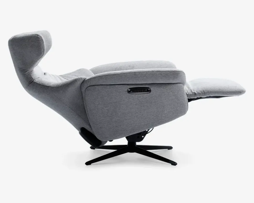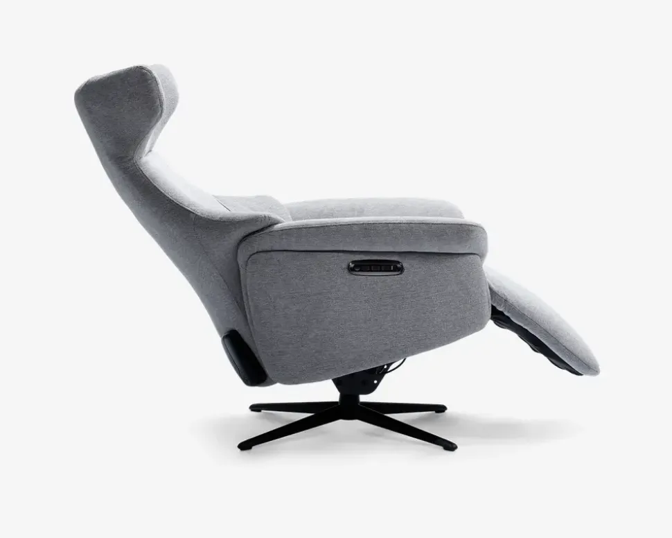 Super lækker drejestol i et flot design og en fantastisk kvalitet. Stolen har fuldautomatisk eldrevet motormekanisme og er med batteri. dette betyder at stolen kan lades op og kan køre uden ledning tilsluttet. Stolen her har et batteri der kan afmonteres, hvilket betyder at du aldrig skal have ledningen tilsluttet stolen, men kan lade batteriet op hvor det nu er mest hensigtsmæssigt. Derfor kan denne stol stå helt frit i stuen uden ledning man kan falde over. Efter en fuld opladning kan den holde strøm i ca. 15-20 dage, alt efter hvor meget den bliver brugt. Stolen er med indbygget fodskammel hvilket er meget pladsbesparende, da skamlen ikke står i vejen hele tiden, når man ikke har brug for den. Stolen her er inklusiv 3 motorer, 1 til rygregulering, 1 til indstilling af fodskamlen og 1 til regulering af nakkestøtten. Alt dette reguleres med betjeningen som sidder på siden af stolen. I betjeningen er der også USB stik og C-stik, så man kan oplade sin mobil og andre enheder mens man sidder i stolen. Stolen er monteret med slidstærkt møbelstof og har en flot sort lakeret metalfod. Stolen har formstøbt koldskum i sædet, hvilket giver en fantastisk siddekomfort og en meget lang holdbarhed.• Inkl. indbygget fodskammel• Dreje og vippefunktion• Elektrisk, fuldautomatisk motormekanisme• Slidstærkt møbelstof• Fantastisk siddekomfort• Regulerbar nakkestøtte• Sortlakeret metalfod• Mål i cm: B.75 x D.85 x H.46/114