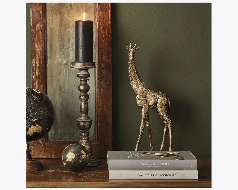 Giraf figur på fod, der er fremstillet i polyresin. Figuren har et elegant og enkelt udtryk og er iøjnefaldende i hjemmets indretning. Kan placeres på en reol, kommode eller i vindueskarmen for at tilføje et eksotisk og kunstnerisk præg til rummet.