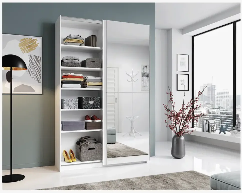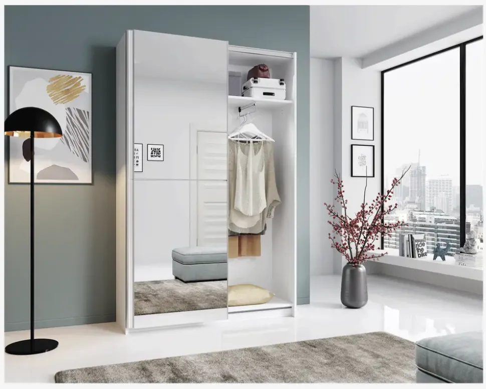 Garderobeskab med en spejllåge