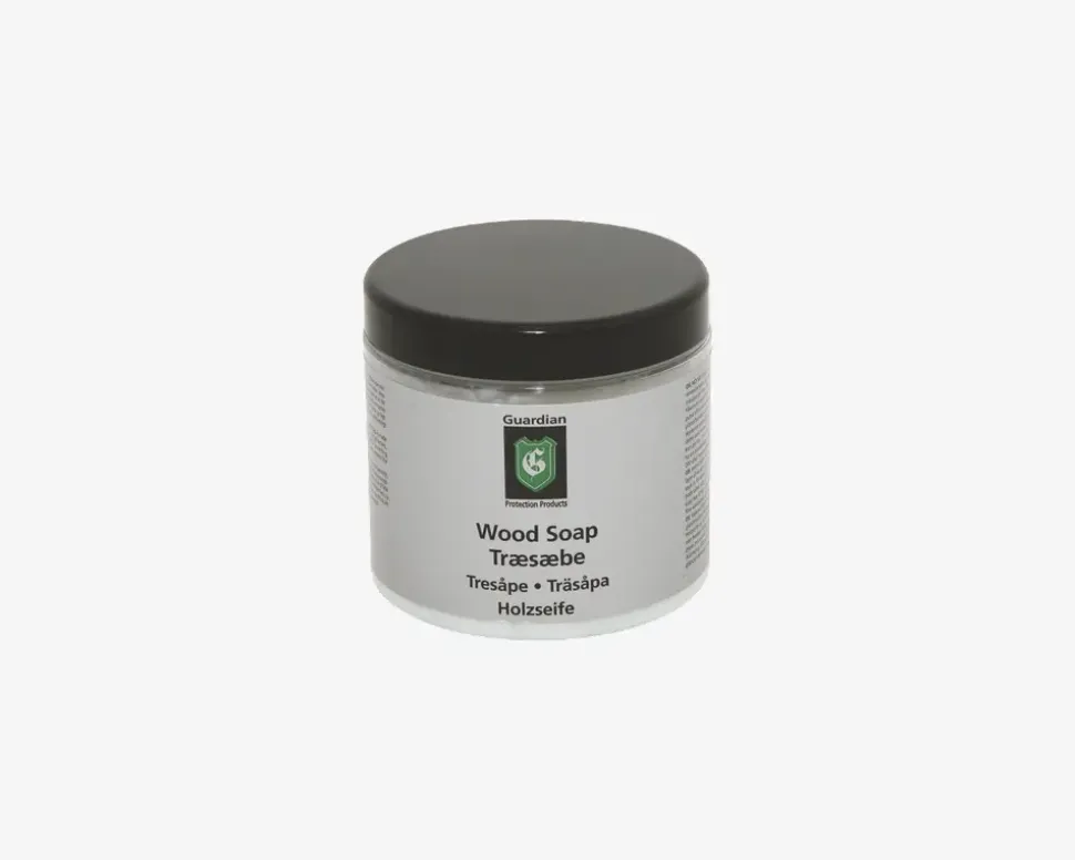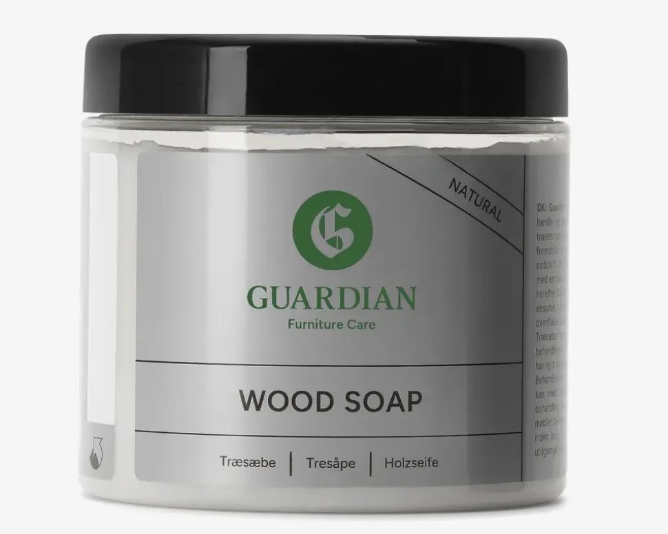Guardian træsæbe, natur anvendes til beskyttelse og pleje af ubehandlet eller sæbebehandlet træ. Produktet er kogt på palmekerneolie og kokosolie og indeholder hverken parfume, farve, optisk hvidt eller blegemiddel. Træsæben er færdigblandet og klar til brug.
