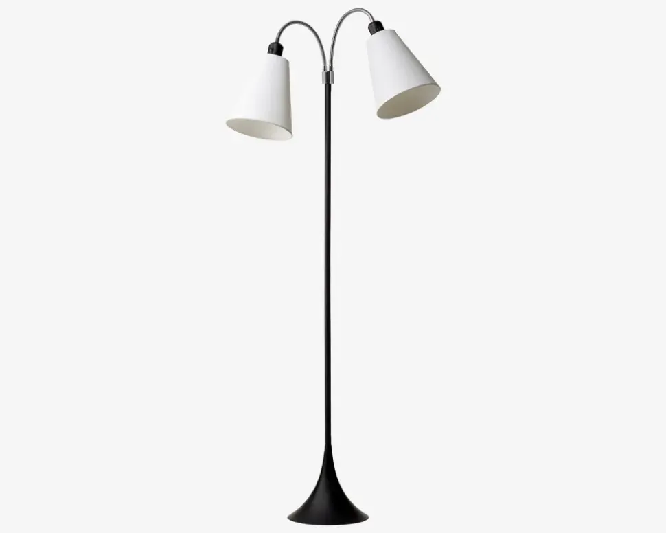Fodgænger er en klassisk gulvlampe serie i forskellige designs. Fodgænger gulvlampen har 2 fleksible arme, med en afbryder på hver arm. Gulvlampen købes uden skærme, så du har derfor mulighed for selv at præge det udtryk lampen skal have, så den passer ind i netop din indretning.BEMÆRK, lampeskærme skal købes separat.
