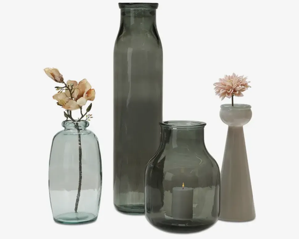 Vi kan nu tilbyde et stor udvalg af vaser fremstillet i 100% genbrugsglas. De flotte vaser findes i mange former og farver, og er meget velegnet til både kunstige buketter, eller store naturlige buketter. Enkelte af vaserne kan også bruges til bloklys.Denne vase er fremstillet i genbrugsglas som efterfølgende er sprayet grå, så den fremstår moderne i sit udtryk. Vasen er fordi materialet er genbrugsglas uperfekt med den charme og hygge som det giver. Vasen er H. 76 x Ø. 18 cm. Kombiner vaserne på kryds og tværs og skab hygge i hjemmet.Vores indkøbere falder til tider over et godt tilbud i en begrænset mængde. Vi sælger disse varer efter først-til-mølle-princippet, så længe lager haves. Da varerne ikke er en del af vores faste sortiment, vil de ikke blive markedsført med før-priser, men til en fast lav pris. En partivare koster det den koster – det synes vi er mest ærligt.Partivare er efter først-til-mølle-princippet, så skynd dig at slå til, inden der er udsolgt!