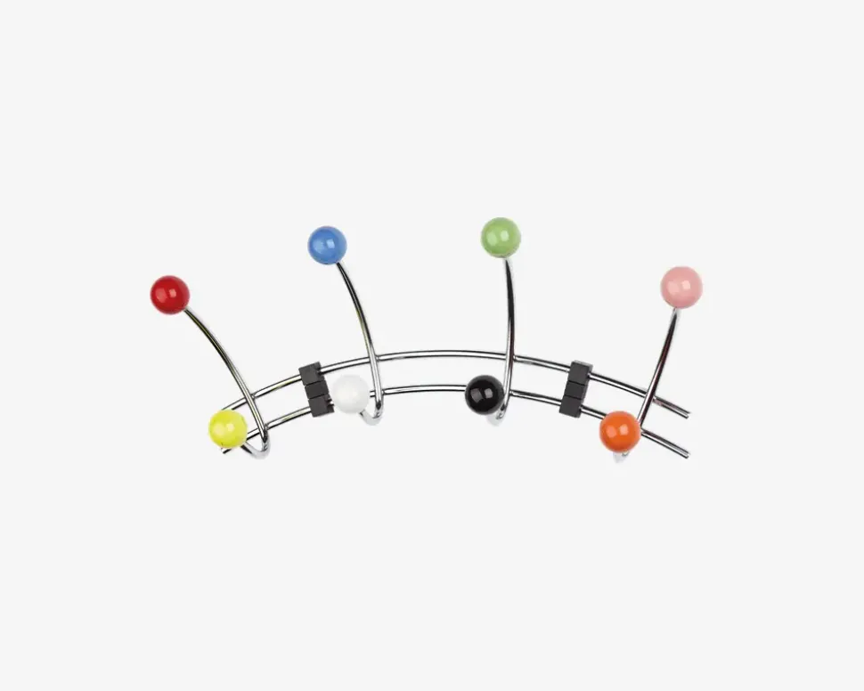Flot krom knagerække med 8 multifarvet knopper. Passer perfekt ind i gangen eller bryggerset til ophæng af overtøjet.Der medfølger skruer og rawplugs til ophæng.