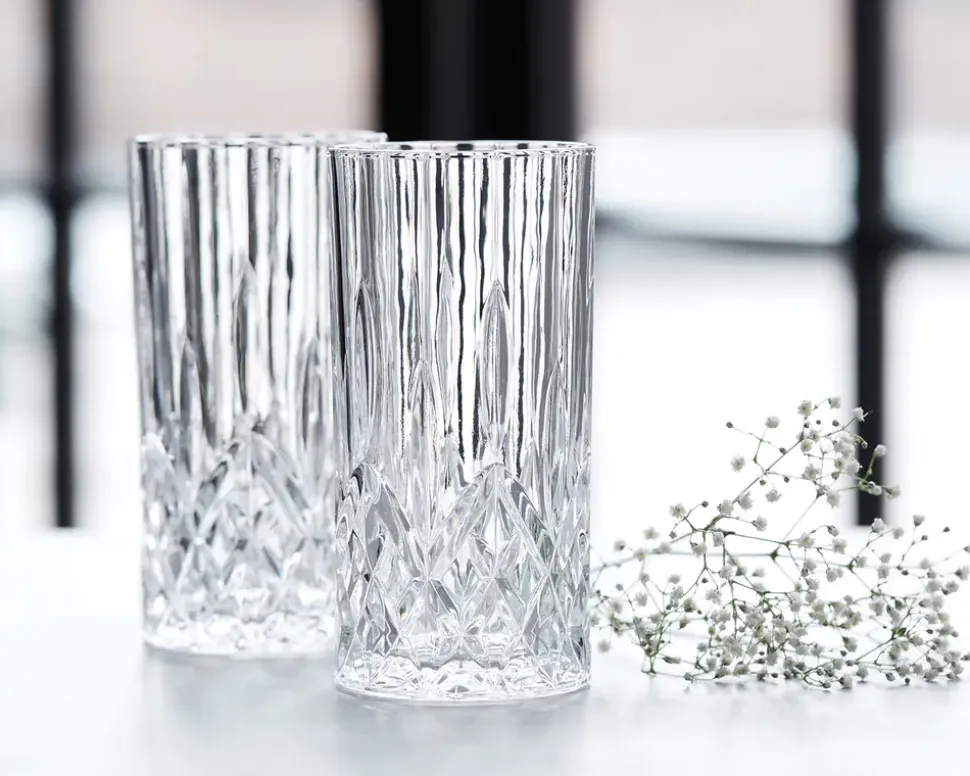 Harvey er en serie af moderne elegance til hverdagspriser. Aida har skabt et elegant mønster til glassene, inspireret af elegant facetslebet krystalglas. Glasset kan indeholde op til 36 cl. og tåler opvaskemaskinen.