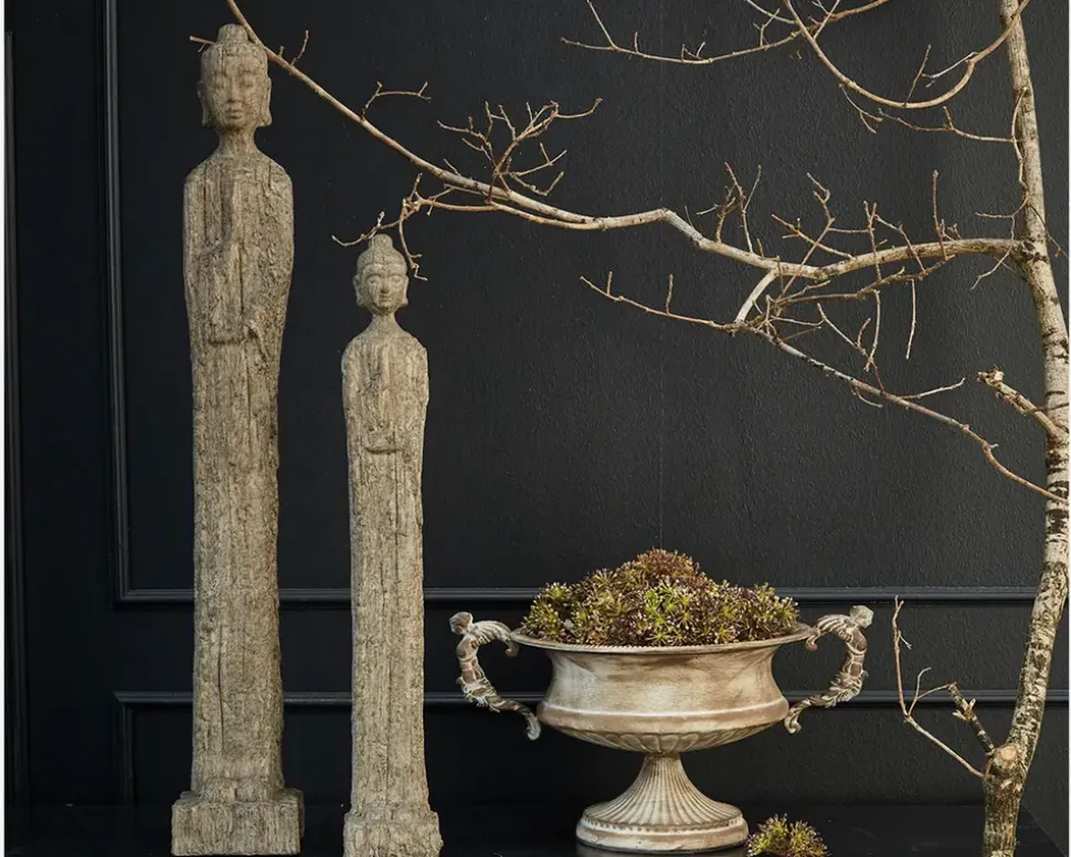 Buddha figur i polyresin der har et roligt og spirituelt udtryk, der skaber en harmonisk stemning i hjemmet. Velegnet som dekorativt element i stuen, entréen eller et hyggeligt hjørne, hvor den kan tilføre både ro og personlighed.