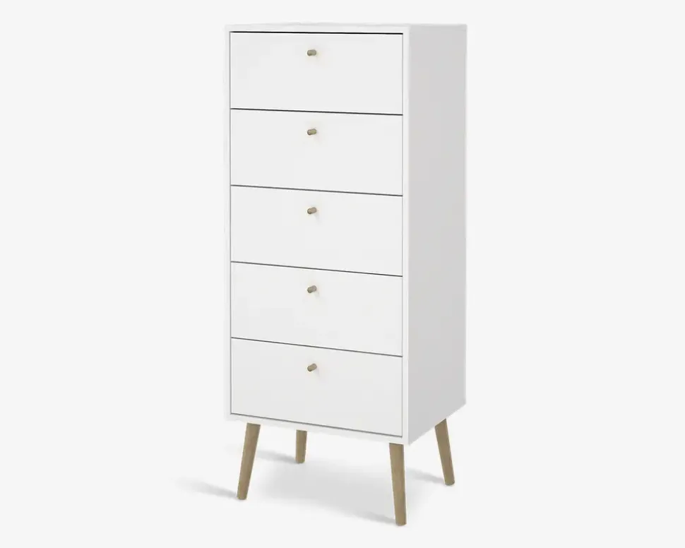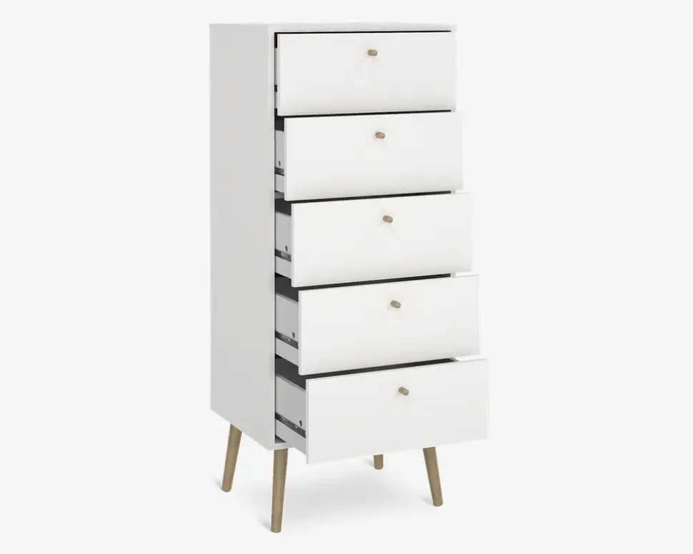Kommode Bodo med 5 skuffer hvid