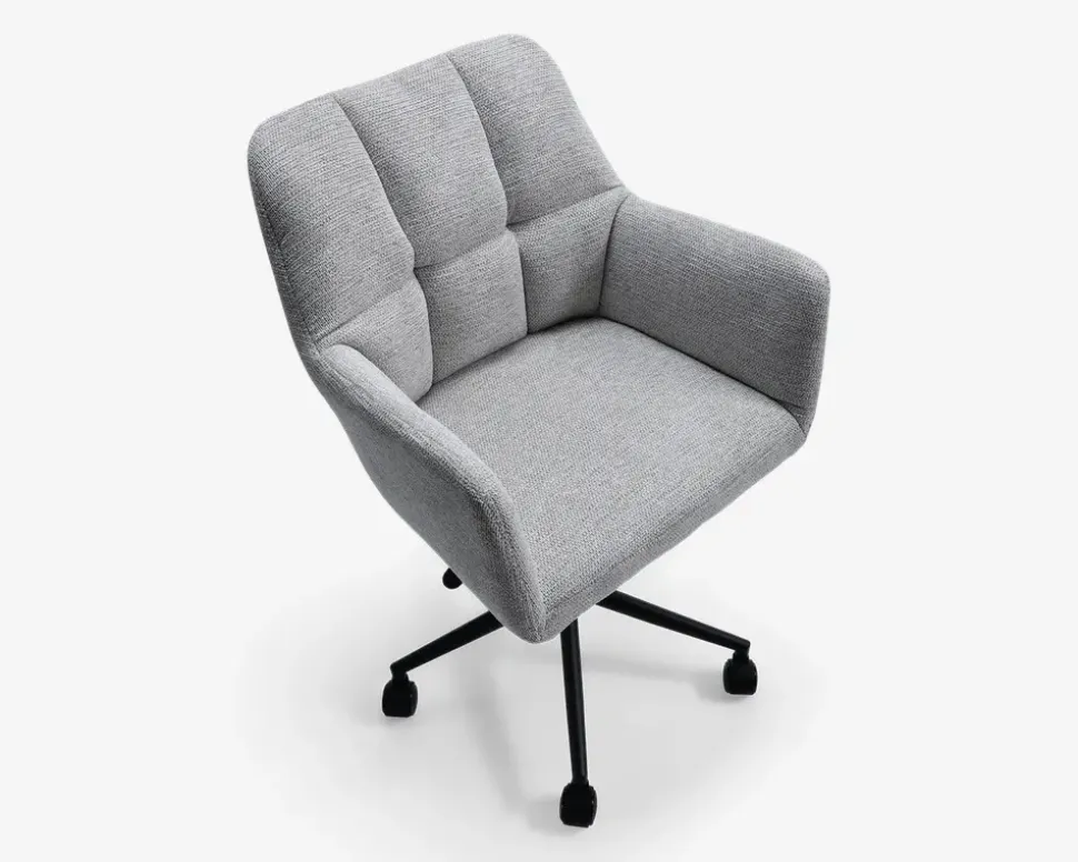 Flot kontorstol med armlæn hvilket giver en rigtig god siddekomfort. Stolen er monteret med blødt og slidstærkt møbelstof i moderigtige farver, som passer til en del af vores sofaer. Dette giver muligheden for at få en bedre sammenhængende dagligstue med stol og sofa i samme farver. Mekanismen er gasautomatik for højderegulering og har en flot sortlakeret metalfod og gummihjul, så de ridser trægulvet mindre. Fås i beige og i grå.• Kontorstol med armlæn• Blødt og slidstærkt møbelstof stof på ryg• Gasautomatik for højderegulering• Sortlakeret metalfod og gummihjul• Højderegulerbar fra 42 – 50 cm• Leveres usamlet men samles let• Mål i cm. B.56 x D.56 x H.79/87