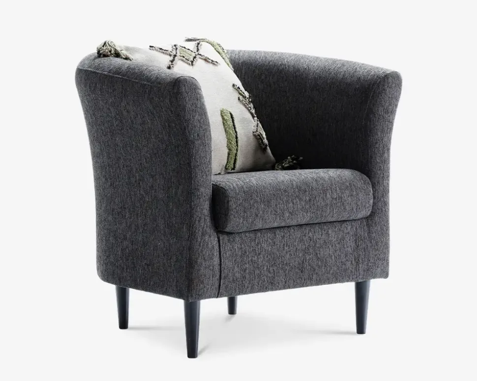 Flot armstol. Kan bruges mange steder fordi stolen er let og ikke fylder så meget. I denne udgave er den lagerført og sælges til en fast lavpris. Stolen er monteret med slidstærkt møbelstof. Stolen har en rigtig dejlig siddekomfort. Monteret med sortlakerede massive træben.Stolen passer også godt til Darling, Choise Living og Choise Sleeping sofaserierne, da stolen kan leveres i de samme, næsten 100 forskellige møbelstoffer. • Slidstærkt møbelstof• Let og elegant• Rigtig dejlig siddekomfort• Mål i cm: B.80 x D.79 x H.42/74