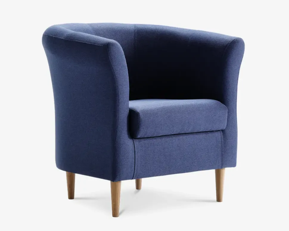 Flot armstol. Kan bruges mange steder fordi stolen er let og ikke fylder så meget. I denne udgave er den lagerført og sælges til en fast lavpris. Stolen er monteret med slidstærkt møbelstof. Stolen har en rigtig dejlig siddekomfort. Monteret med sortlakerede massive træben.Stolen passer også godt til Darling, Choise Living og Choise Sleeping sofaserierne, da stolen kan leveres i de samme, næsten 100 forskellige møbelstoffer. • Slidstærkt møbelstof• Let og elegant• Rigtig dejlig siddekomfort• Mål i cm: B.80 x D.79 x H.42/74
