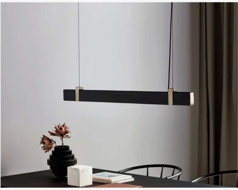 Lilt er en langbordspendel fra Nordlux. Den kan med sit enkle og stilrene design placeres flere steder i hjemmet, for eksempel i køkkenet eller over spisebordet. Lampens lys kan justeres så lysstyrken kan indstilles efter ønske.