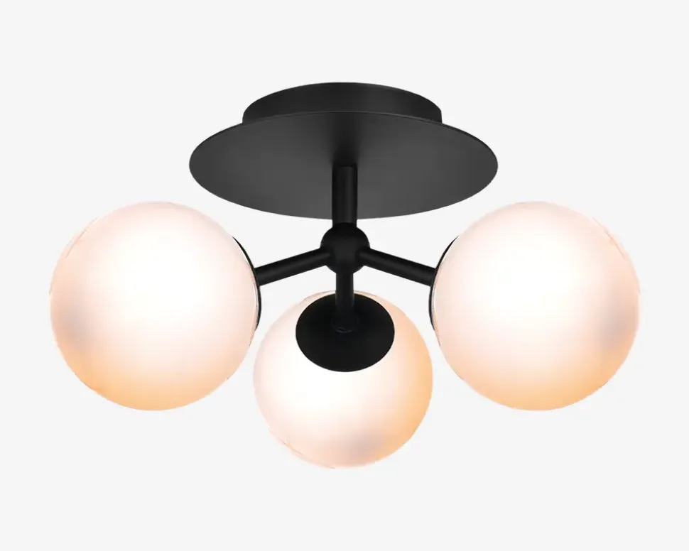 Atom loftlampen giver et en flot dekorativ belysning til værelset eller entréen. Med denne lampe får det rene design lov til at folde sig ud i fuld flor. Brug lampen alene eller kombinér med flere lamper fra Atom serien i hjemmet.• Mål i cm: H.16 x Ø.26• Farve: Opal/sort• Materiale: Metal/Glas• Fatningstype: 3 x G9, Max 28W• Ekskl. Lyskilder• IP20