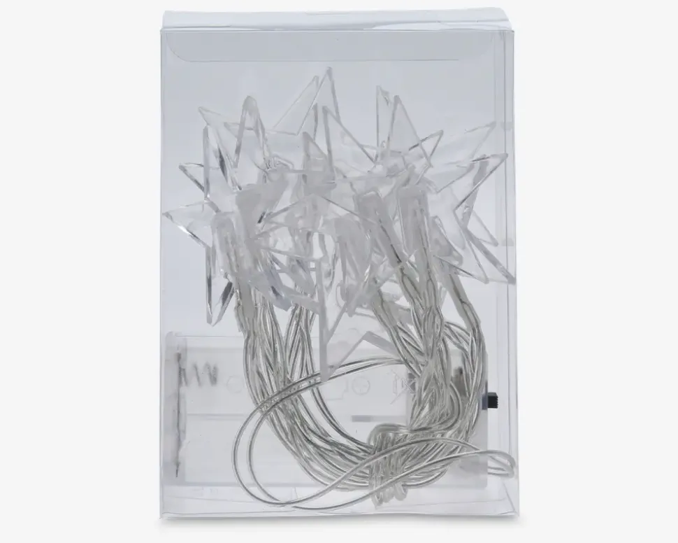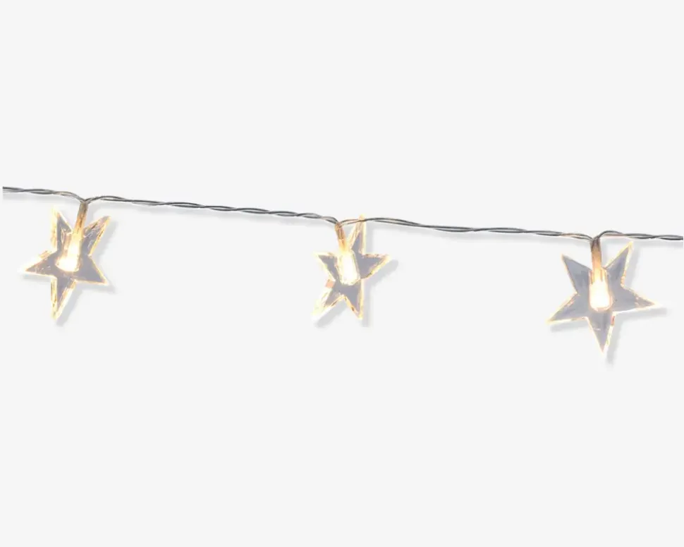 LED lyskæde som er perfekt til at skabe en hyggelig stemning i dit hjem. Lyskæden er med varme hvide LED dioder som forestiller stjerner. Du kan nemt hænge den op på vægge, vindueskarme eller juletræet for at skabe en smuk belysning.