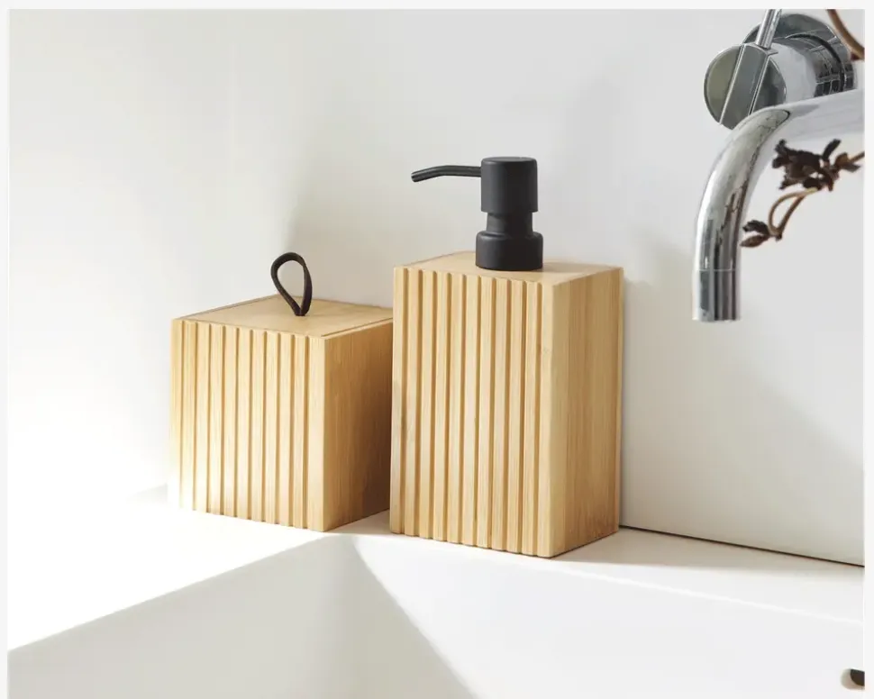 Opbevaring i bambus der giver en fin udtryk til badeværelset. Brug opbevaringen til vatrondeller, vatpinde eller til andre småting. Mulighederne er mange. Fuldend udtrykket på badeværelset med andre dele fra serien.