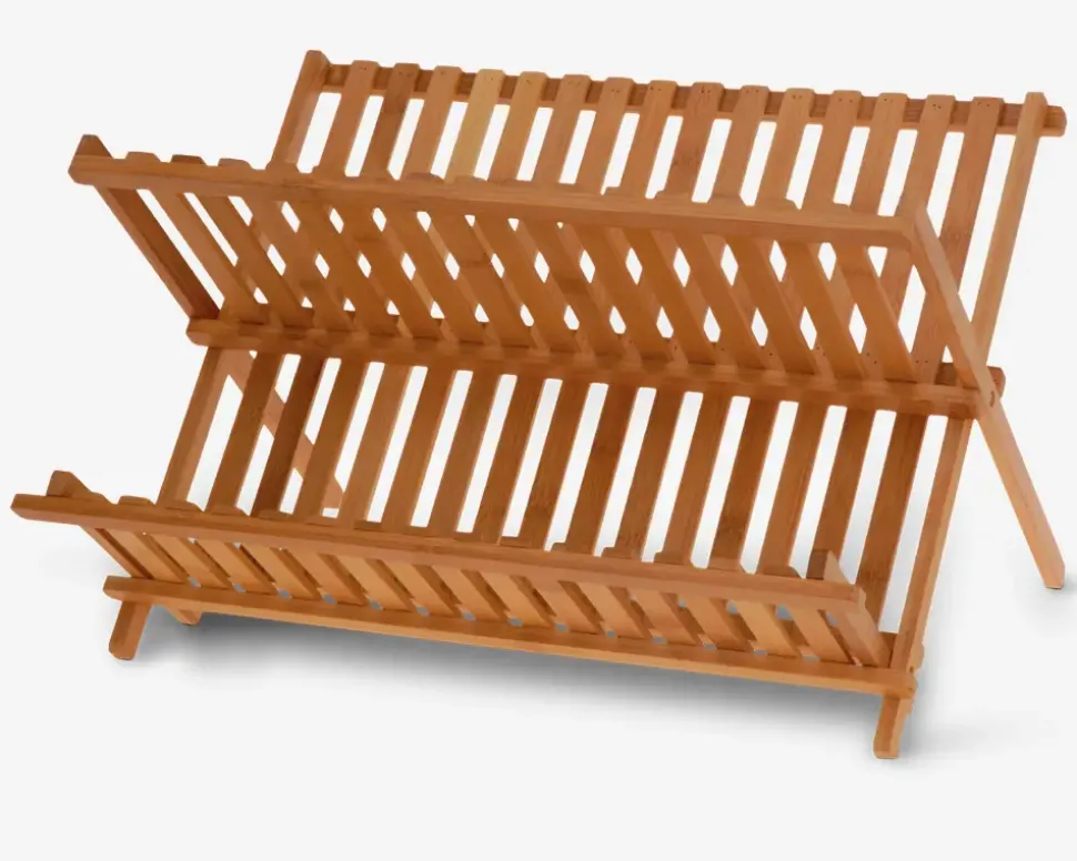 Tilføj et naturligt og stilrent touch til dit køkken med dette opvaskestativ i træ. Det kombinerer æstetik og funktionalitet, så du kan tørre din opvask på en praktisk og dekorativ måde. Perfekt til både glas, tallerkener og bestik, og det foldbare design gør det nemt at opbevare, når det ikke er i brug.