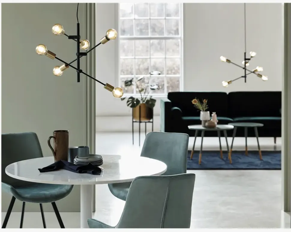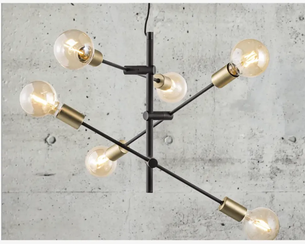 Josefine er på en og samme tid en minimalistisk og elegant lampe, som samtidig er dekorativ lyskilde. De strigente rør bidrager til et industrielt udtryk med associationer til en rå og moderne indretning. Anvend evt. dekorationspærer og skab dit eget personlige præg.• Mål: H.79 x Ø.55 cm• Materiale: Metal• Farve: Sort/Messing• Fatningstype: E27 maks 28W (6stk)• Ledningslængde: 200cm stofledning• Lyskilde: Ekskl. Pære• IP-Kode: IP20