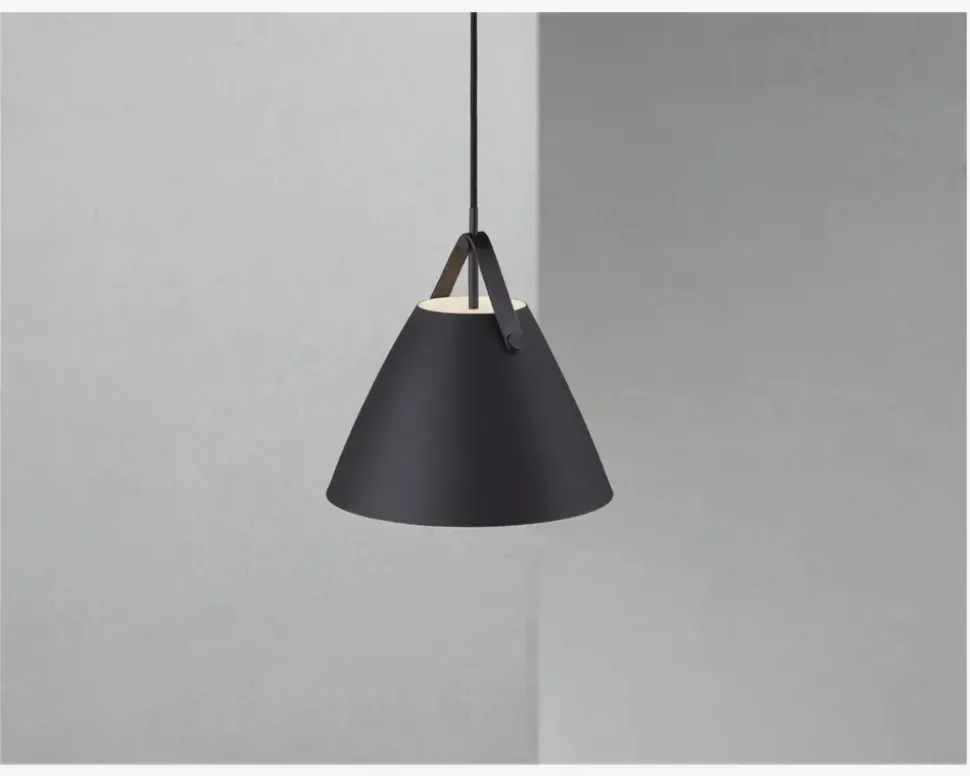 Metal og læder går godt i spænd med den lette nordiske stil. Med STRAP virker det indlysende – lige så indlysende som at en læderrem har lagt navn til nordisk lampedesign. Den smalle og elegante læderrem giver STRAP et både varmt og råt udtryk, der balancerer mellem det klassiske og det industrielle. Der medfølger to læderremme i henholdsvis brun og sort, så det er op til dig at give STRAP det endelige look. Navnet på STRAP spiller i høj grad sammen med lampens udseende. Pendlen er hængt op i en læderstrop, som du oven i købet selv kan skifte ud med en sort eller naturfarvet version. På den måde kan du selv være med til at bestemme lampens udseende. Kombinationen af læder og metal eller glas gør samtidig, at lampen visuelt spiller sammen med en moderne indretning, hvor materiale miks er en af tidens største trends.• Mål i cm: Ø.27 x H.27• Farve: Sort• Materiale: Metal/Læder• Fatningstype: E27. Max 40W• Ekskl. Lyskilde • IP-kode: IP20• Ledningslængde 300 cm