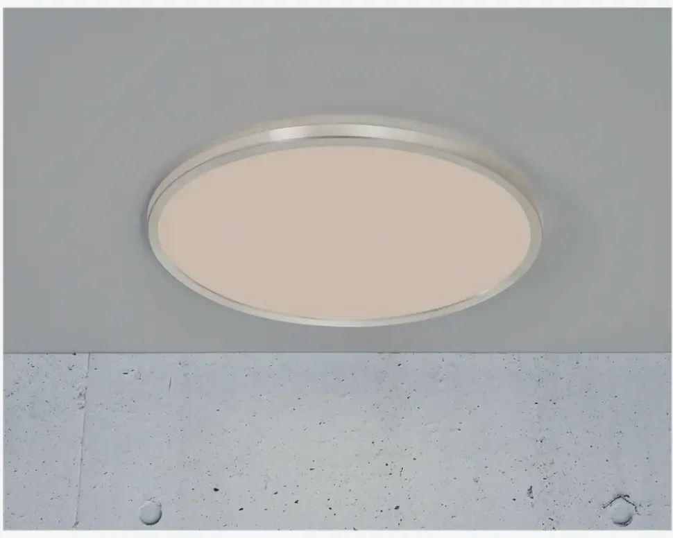 Diskret plafond i et klassisk og tidsløst design, som er ideel til rum som f.eks. entré, bryggers eller vaskerum. Lampen kommer med et indbygget 3-step dæmpning, som gør det nemt at justere lysstyrken. Lampen er lavet med IP54, hvilket gør den ideel til vådrum. Det karakteristiske ved denne lampe er også, at den kommer med mulighed for at vælge krom eller hvid kant. • Mål i cm: H.2,5 x Ø.43• Farve: Krom• Materiale: plast• Lumen: 2100• Kelvin: 3000/4000• Levetid i timer: 30.000• Integreret LED 19 watt• IP54