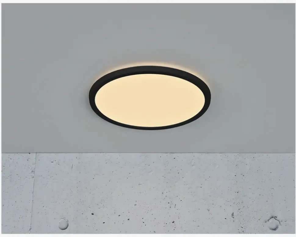 Diskret plafond i et klassisk og tidsløst design, som er ideel til rum som f.eks. entré, bryggers eller vaskerum. Lampen kommer med et indbygget 3-step dæmpning, som gør det nemt at justere lysstyrken. Lampen kommer med IP54, hvilket gør den ideel til vådrum. • Mål i cm: H.2,3 x Ø.29,4• Farve: Sort• Materiale: Plast• Lumen: 1600• Kelvin: 3000/4000• Levetid i timer: 30.000• Integreret LED 14,5 watt• IP54