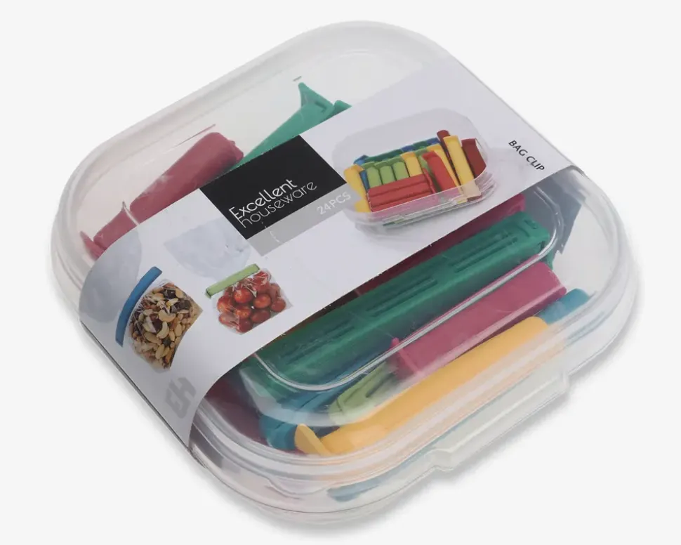 Poselukker i assorterede farver og i forskellige størrelser. Brug dem til lukning af poser, så disse lukker tæt. På den måde er det nemmere at holde madvarerne friske.