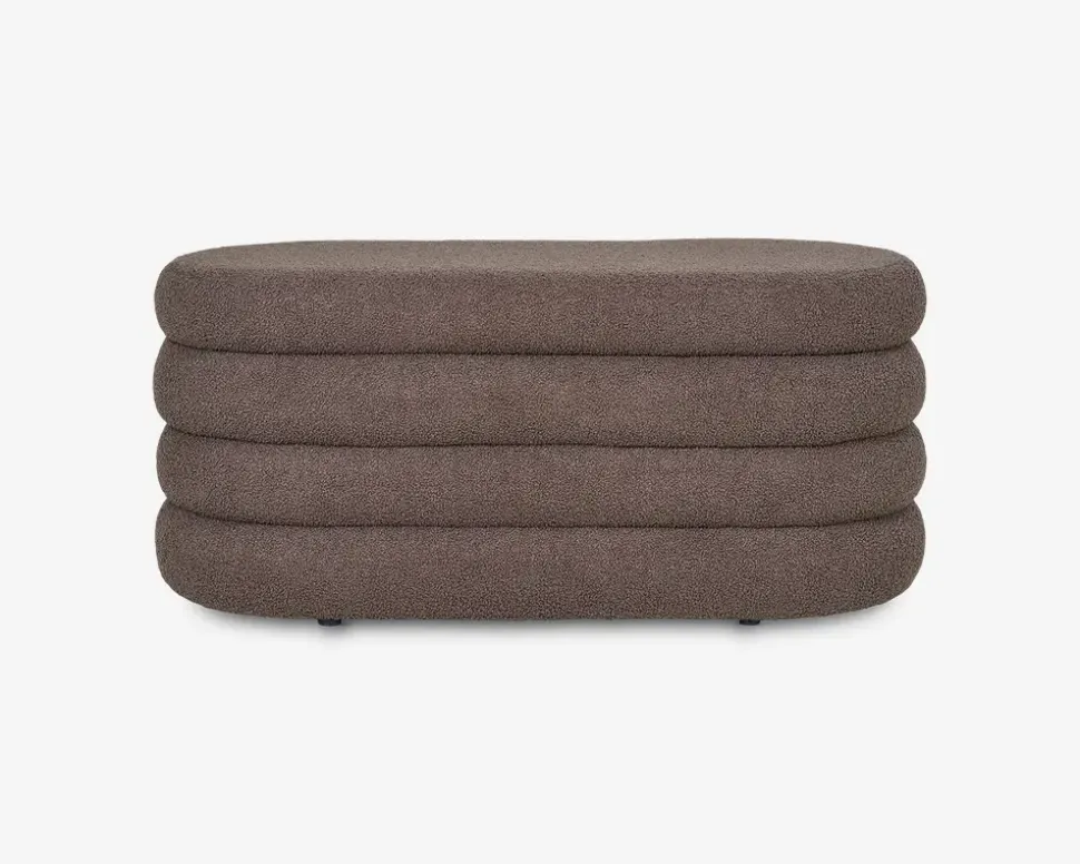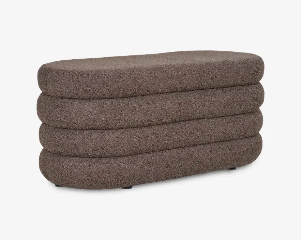 Smart puf eller bænk med moderigtigt boucle stof. Puffen/bænken leveres samlet som vist her. Den er meget holdbar og kan snildt bære en belastning ovenpå sædet på mindst 150 kilo. Puffen/bænken kan anvendes alle steder hvor man lige har behov for ekstra siddepladser eller opbevaring. I stuen, på børneværelset, i soveværelset, i entreen, i gæsteværelset, ja overalt. Og som en ekstra bonus er der plads til en masse opbevaring inden i, så man hurtigt kan få gemt rodet af vejen. • Moderigtigt boucle stof• Med opbevaring• Kan snildt bære 150 kg• Leveres samlet som vist her• Mål i cm: L. 103 D. 45 cm. H. 44 cm