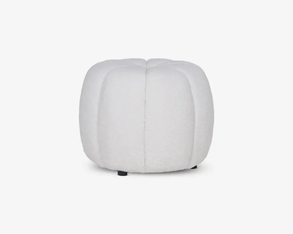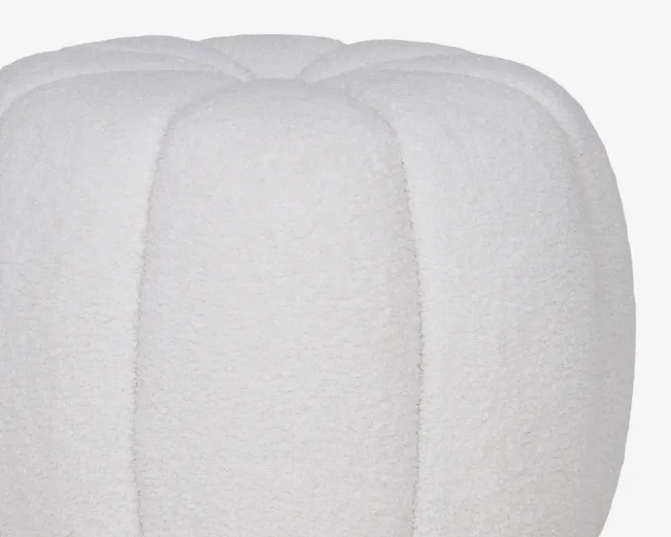 Smart puf med moderigtigt bouclestof i hvid. Så passer den nemlig til alt. Puffen leveres samlet som vist her. Puffen er meget holdbar. Den kan snildt bære en belastning ovenpå sædet på mindst 150 kilo. Puffen kan anvendes alle steder hvor man lige har behov for en ekstra siddeplads. I stuen, på børneværelset, i soveværelset, i entreen, i gæsteværelset, ja overalt. • Bouclestof i hvid• Kan bruges overalt• Kan snildt bære 150 kg• Leveres samlet som vist her• Mål: Dia. Ø. 48 cm. H. 38 cm