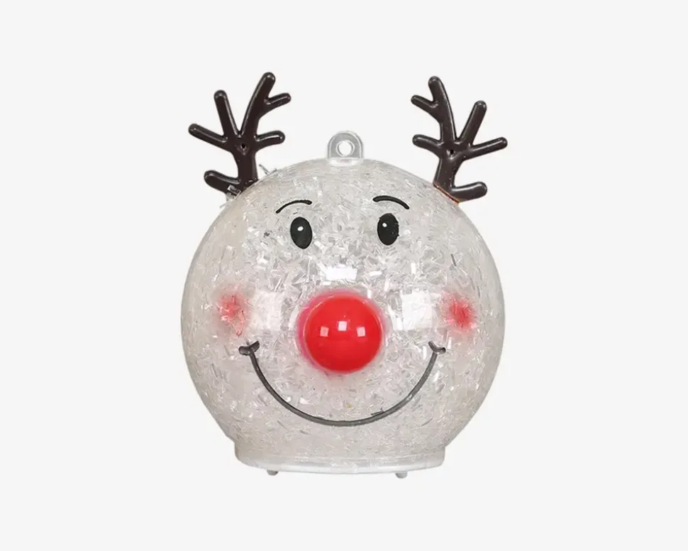 Denne kugle med LED, der forestiller Rudolf, er en charmerende og festlig tilføjelse til din juleudsmykning. Kuglen er lavet af holdbar akryl og har en indbygget LED-lyskilde, der skaber en varm og stemningsfuld belysning. Kuglen er designet med en praktisk snor, der gør det nemt at hænge den op, enten på juletræet, i vinduet eller andre steder i dit hjem. Bemærk, at de kommer assorteret, købes enkeltvis og at der ikke kan vælges model ved køb i webshoppen.• Mål i cm: Ø.8• Batteri: 3x LR44, inkl.