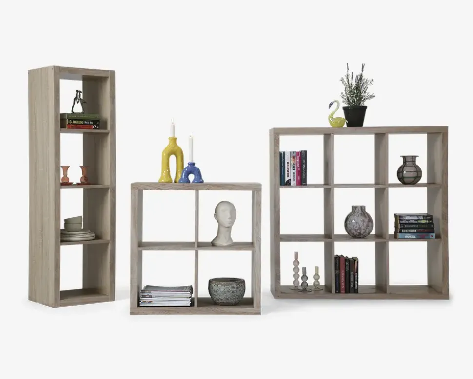 Flot rumdeler i hvid eller lys eg kunstfiner. Reolerne er produceret i tykke plader som giver et solidt og stabilt udtryk. Kunstfineren er meget rengøringsvenlig som blot tørres af med en hårdt opvredet klud med sæbevand. Reolerne kan stå frit i rummet eller langs væggen som man nu ønsker. Reolen kan fås i flere udgaver 2×2 rum, 3×3 rum og 1×4 rums reoler. Reolerne leveres usamlet, men samles nemt.Her vist som 2×2 rums reol i eg• Enkelt design• Solidt og stabilt udtryk• Meget rengøringsvenlig• Kan stå frit eller langs væggen. • Leveres usamlet, men samles nemt• Mål i cm. B. 77 cm. H. 77 cm. D. 38 cm