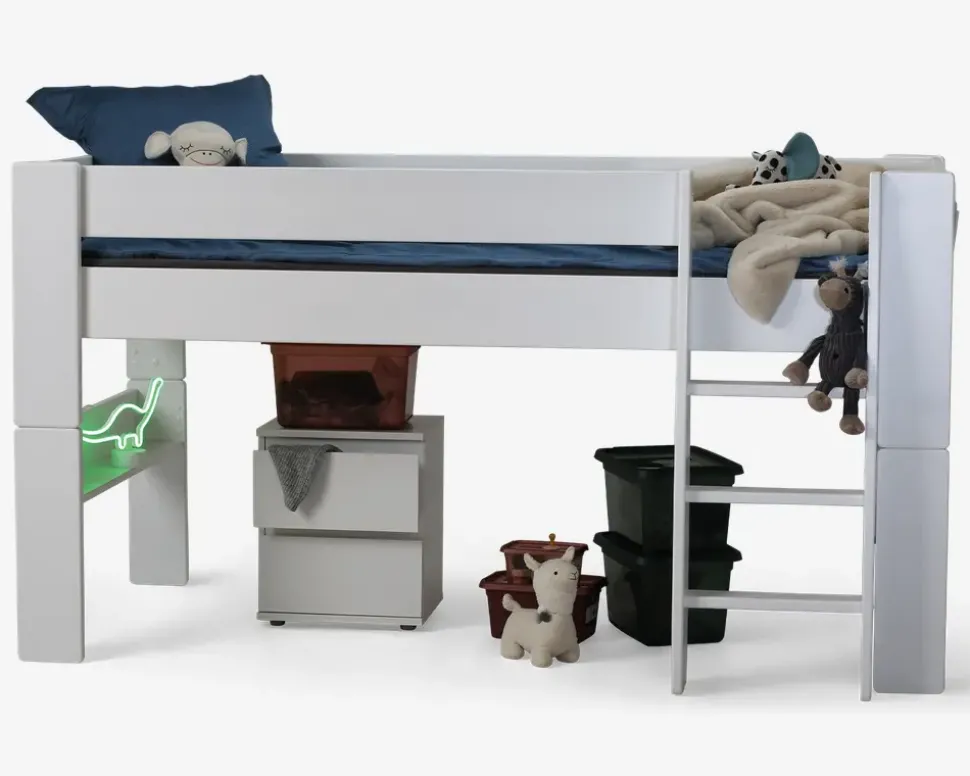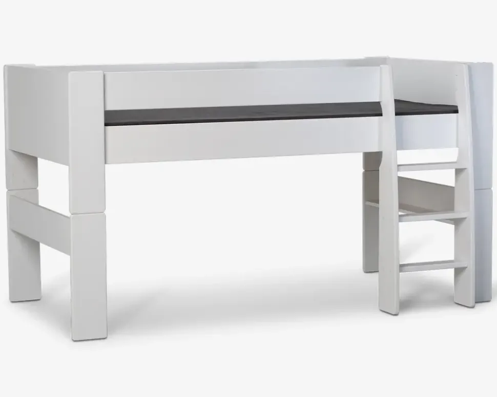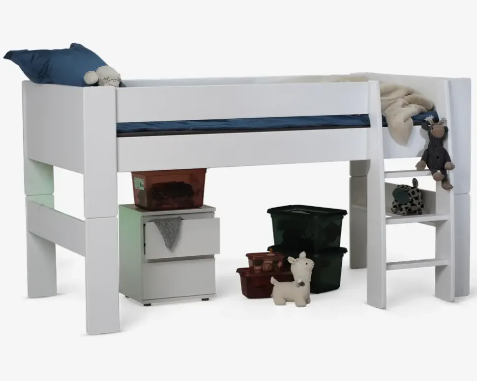 Junior/enkelt seng på 90×200 cm. Sengen er fremstillet i MDF (møbelfiberplade) som er hvidlakeret. Den kraftige konstruktion af denne seng giver en stor stabilitet og en lang holdbarhed. Sengen leveres inkl. lamelbund. Der kan tilkøbes et modul som kan bygges på denne junior seng, så sengen kan blive til en halvhøj seng. Vi anbefaler at der købes en madras på minimum 12 cm i højden, så madraskanten er højere end sengesiden• Hvidlakeret MDF• Svanemærket• Madrasmål 90×200 cm• Leveres usamlet men samles let• Mål i cm. H. 60 cm. B. 100 cm. L. 208 cm