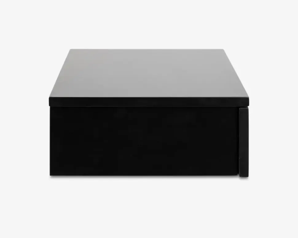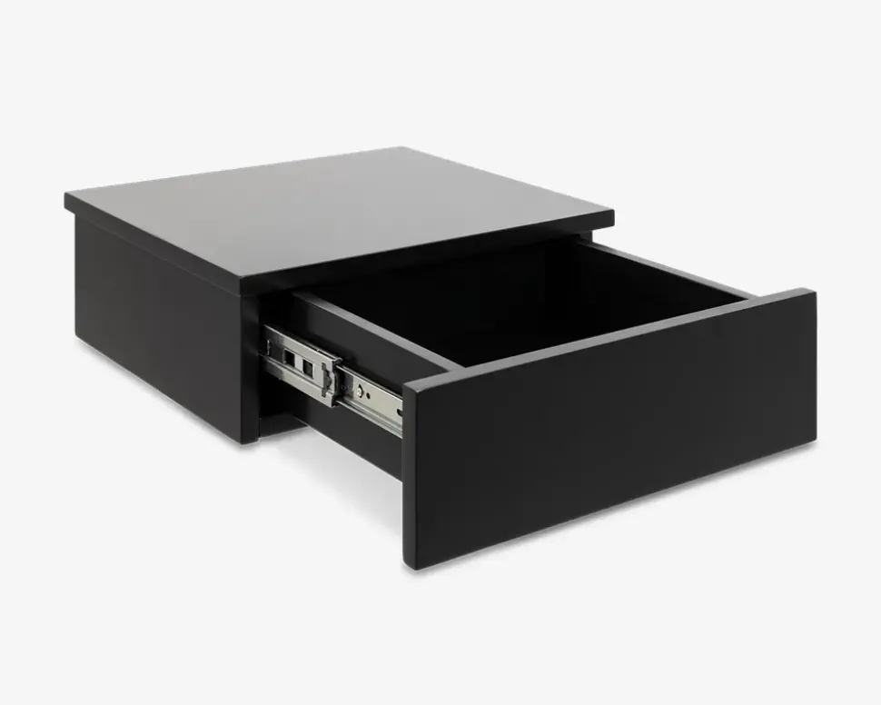 Et væghængt senge bord som dette, er perfekt, det letter rengøringen, hvilket er praktisk i et soveværelse. Sengebordet har et minimalistisk design, med rene linier, og passer derfor diskret ind i de fleste soveværelser. Den 1 skuffe giver dig mulighed for at opbevare alt, fra godnat læsningen, briller, medicin, du bestemmer helt selv.Sengebordet er fremstillet i sort lakeret MDF, og kræver ingen vedligeholdelse, rengøringen foretages med en klud vredet op i rent vand. Bemærk at overfladen kan ridses, så hvis du vælger at placere en natlampe på bordet, anbefaler vi at du benytter filtdupper.Leveres usamlet