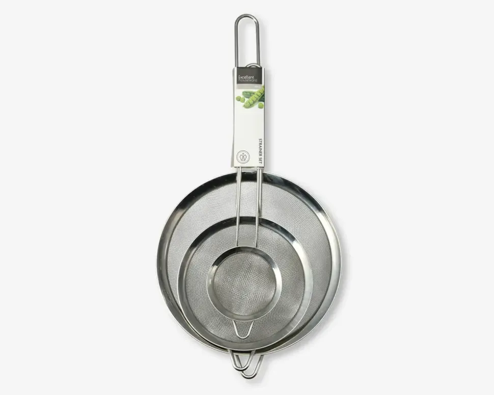 Sigtesæt med 3 forskellige størrelser: Ø.20, Ø.14 og Ø.8 cm. De er lavet af rustfrit stål og er perfekt til både daglig madlavning og mere avancerede kulinariske projekter.