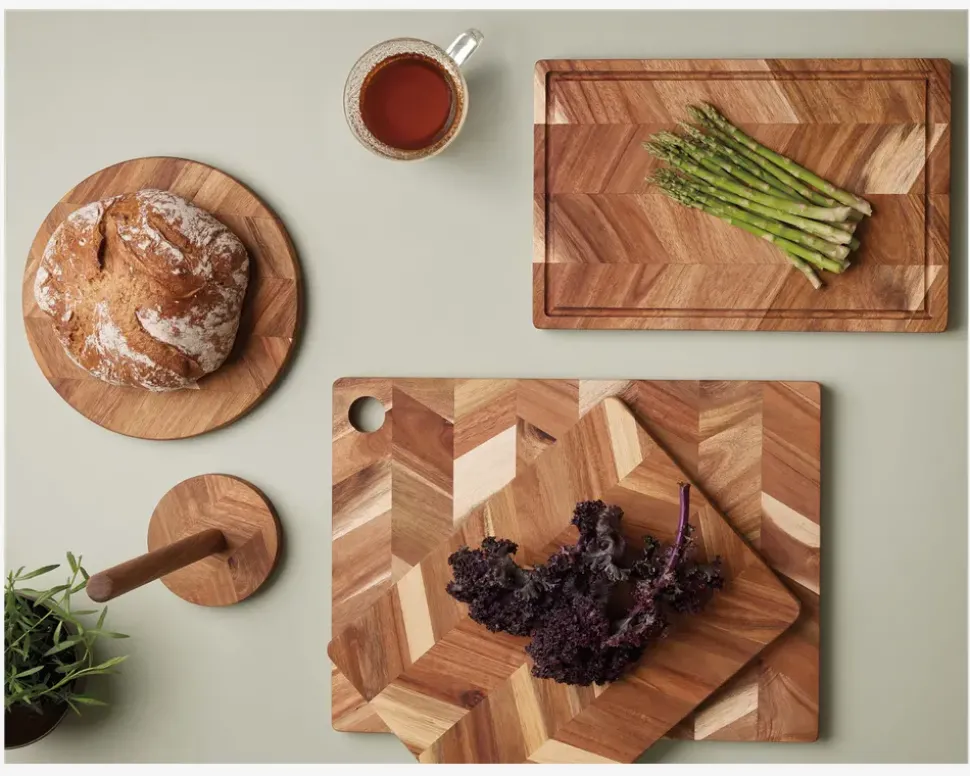 Skærebræt med saftrille i acacietræ, med et smukt og iøjnefaldende sildebensmønster fra Aida. Skærebrættet er både en tidløs, funktionel og elegant tilføjelse til dit hjem. Designet giver derudover også en rustik og naturlig charme til din indretning. Skær dit kød ud på dette smukke skærebræt, uden frygt for at have saft løbende ud på bordet. • Mål i cm: H.2 x L.40 x B.26• Tåler ikke opvaskemaskine• Vaskes i hånden, tørres med viskestykke og derefter lufttørres • Bør behandles med fødevarevenligt olie, for at undgå udtørring