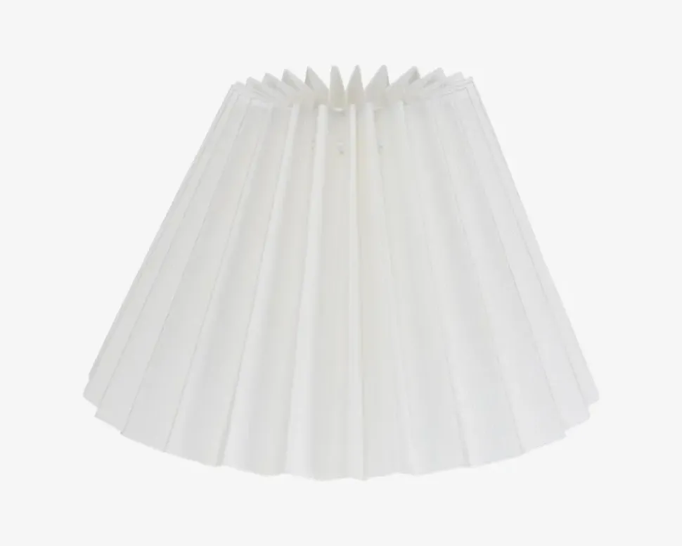 Flot og klassisk plisse lampeskærm af plastik , som passer ind i ethvert hjem, da farven er enkel og neutral. Lampeskærmen er særligt velegnet til en lampefod som kan købes fra sortiment. Lampeskærmen sættes på ved at to metalbøjler inde i lampeskærmen klikkes ned over pæren.