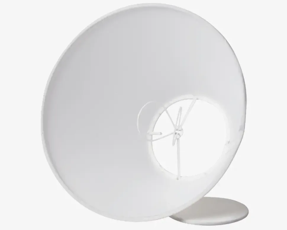 Flot enkelt lampeskærm i hvid med låg. Låget kan tages af, så der kommer mere lys ud i rummet, men kan også sættes på, hvis man ønsker en mere hyggelig belysning i stuen, værelset, kontoret m.m.