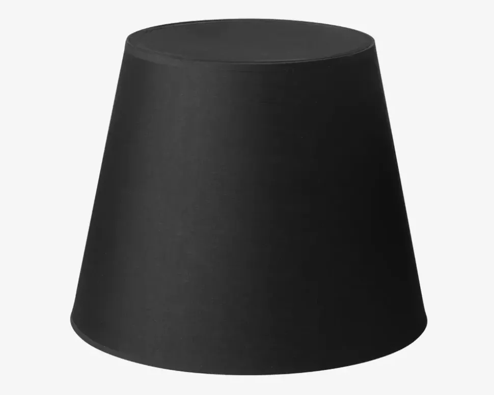 Flot Emma Domus lampeskærm i stof og med aftageligt låg i toppen af skærmen. Låget kan tages af så lyset bedre kan komme ud i rummet, eller man kan beholde låget på for at afdæmpe lyset og derved skabe en mere hyggelig stemning.