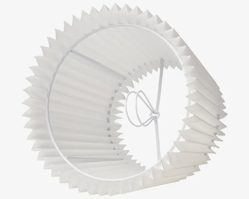 Emma Villa er en lampeskærm i hvid plissé, der tilfører et tidløst og let udtryk til enhver lampe. Den klassiske foldede struktur spreder lyset blødt og behageligt, hvilket skaber en hyggelig stemning i rummet. Skærmen passer perfekt til både bord- og gulvlamper og monteres let ved at to metalbøjler inde i lampeskærmen klikkes ned over pæren.
