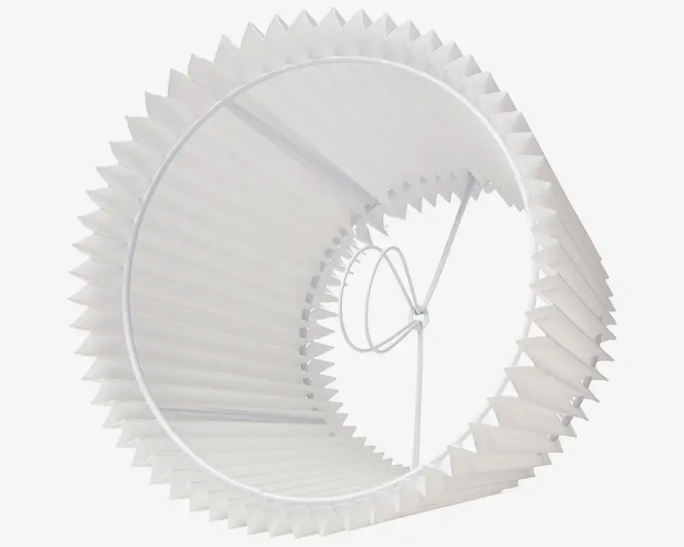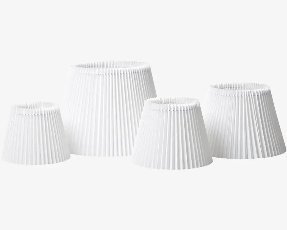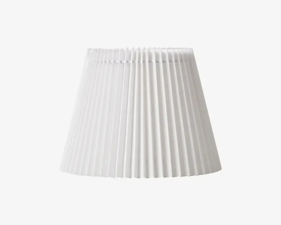 Emma Villa er en lampeskærm i hvid plissé, der tilfører et tidløst og let udtryk til enhver lampe. Den klassiske foldede struktur spreder lyset blødt og behageligt, hvilket skaber en hyggelig stemning i rummet. Skærmen passer perfekt til både bord- og gulvlamper og monteres let ved at to metalbøjler inde i lampeskærmen klikkes ned over pæren.