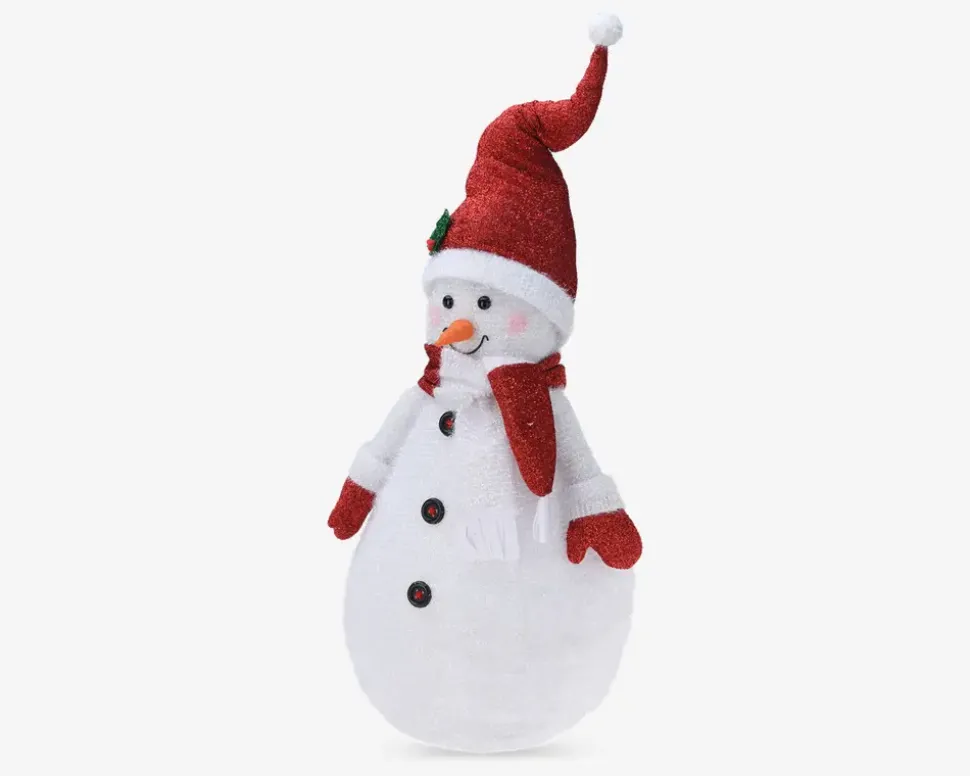 Snemand med LED-lys der kan placeres både indendørs og udendørs. Snemanden måler 120 cm i højden og er udstyret med 10 varme LED-lys, der skaber en hyggelig stemning. Den har timerfunktion og drives af batteri, så den er nem at placere uden brug af ledning. Ideel som blikfang i juletiden.