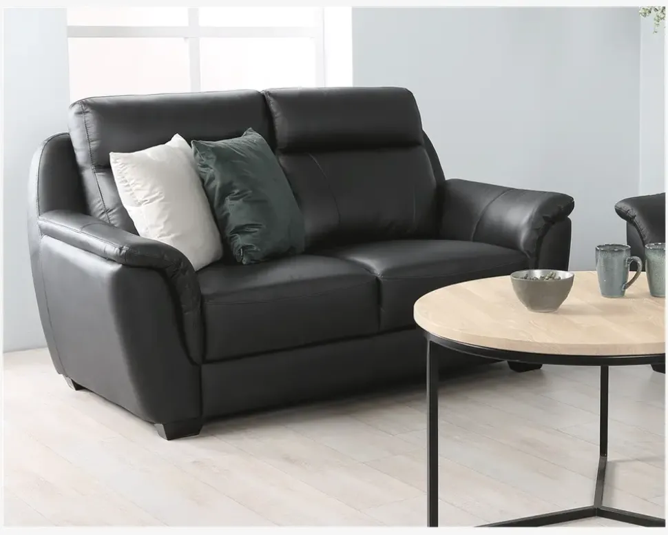 Flot sofa i italiensk inspireret design. Sofaen er monteret med sort dækfarvet okselæder på alle slidflader og med kunstlæder på ydersider. Sofaen har formstabilt polyether skum i sæder og nedenunder er der nozagfjedre. Dette giver en rigtig dejlig siddekomfort og en lang holdbarhed. Sofaen fås både som 3 pers. og 2 pers og derfor er den også oplagt at købe som sofasæt.• Flot italiensk inspireret design• Formstabilt polyether skum i sæder• Sort okselæder på alle slidflader• Nozagfjedre i sæderammen• Mål i cm: L.156 x D.82 x H.41/87