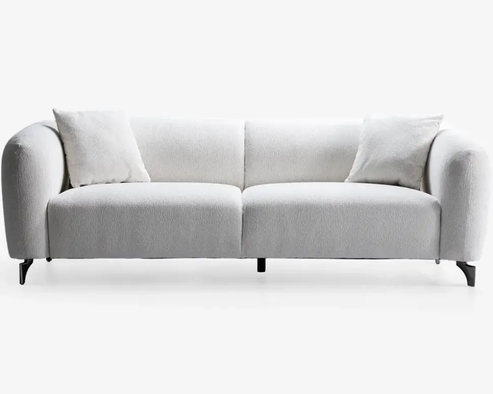 Smart og skulpturelt designet sofa med bløde linjer og et moderne look. Sofaen er monteret med et lækkert blødt og slidstærkt møbelstof. Farven og stoffets lækre struktur er med til at understrege sofaens bløde og indbydende form. Sofaen er polstret med posefjedre i sæder, omgivet af formstabilt polyether skum og med nozag-fjedre, som giver sofaen en dejlig komfort og gør sofaen langtidsholdbar. Denne sofa findes som 3 pers. sofa med 2 sædehynder, en 2 pers. sofa og er derfor oplagt at købe som sofasæt.• Posefjedre i sæder• Lækkert blødt møbelstof• Bløde og indbydende former• Massiv træramme med nozagfjedre• Rigtig lækker siddekomfort• Mål i cm. B. 224 x D. 97 x H. 43/72