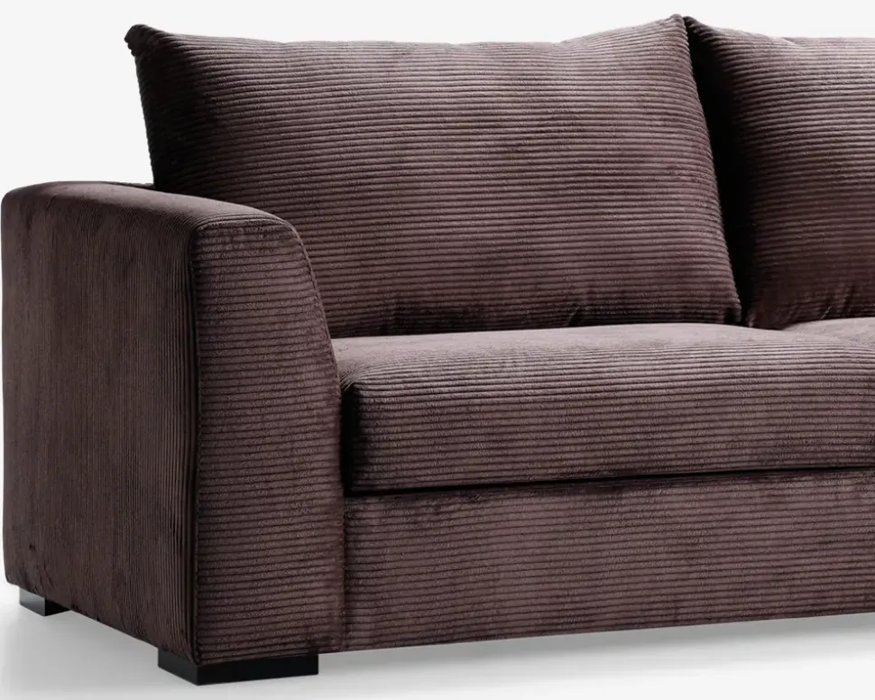 Lækker stor sofa med open end i exceptionel kvalitet i et meget eksklusivt design. Sofaen er her monteret med slidstærkt og moderigtigt bredriflet fløjl men kan bestilles i mange andre typer møbelstoffer og i mange forskellige farver. Sofaen har en siddekomfort ud over det sædvanlige med en sandwich konstruktion af flere lag koldskum i forskellige hårdheder, for at opnå den helt rigtige komfort. Og for lige at toppe det hele, er ryghynderne lavet med skumgranulat og silicone fibre, så de er dejlig bløde og indbydende. Alt i alt så er dette sofaen som alle vil snakke om når de har prøvet den. Når man først har sat sig, vil man ikke op igen.Lagerføres i denne farve enten højre eller venstrevendt. Kan bestilles i mange forskellige møbelstoffer. • Exceptionel god kvalitet• “High Density” koldskum i både sæde og ryg• Fantastisk siddekomfort og lang holdbarhed.• Dejlig bløde og indbydende ryghynder• Kan bestilles i flere farver og møbelstoffer• Mål i cm. L. 317 x D.97/155 x H.46/92