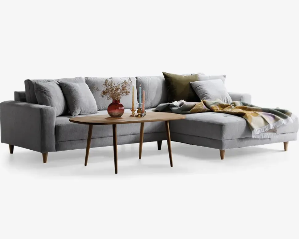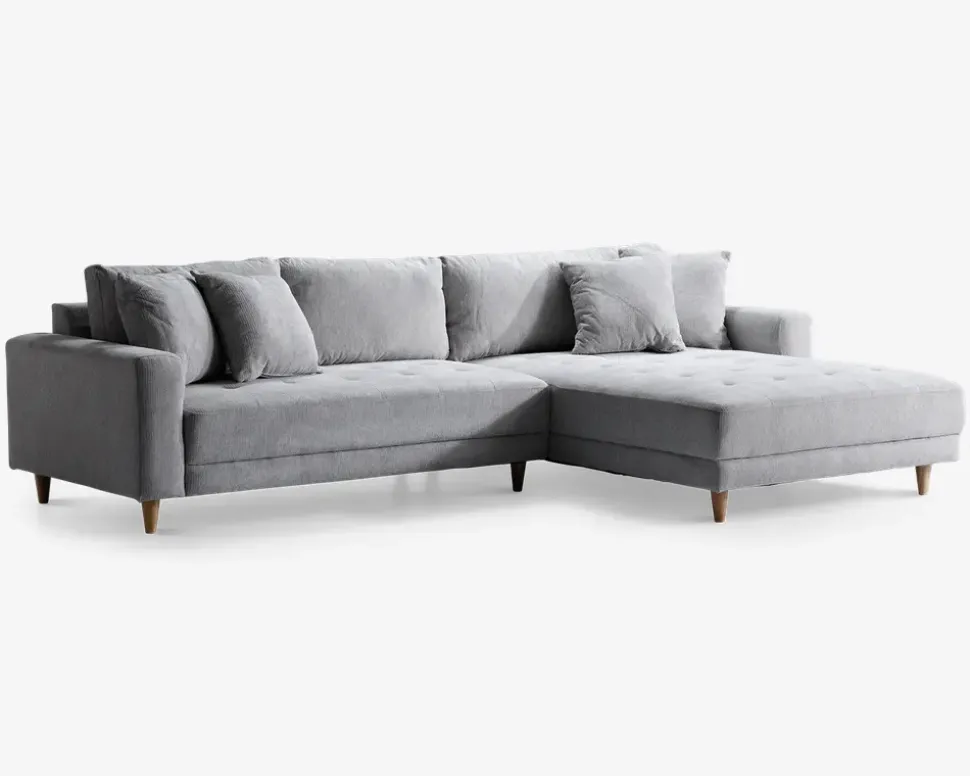 Denne lækre sofa har et maskulint udtryk som understreges af indtrækningerne i stoffet i hele sædet, den brede arm og de elegante massive træben. En rigtig flyder, med en ekstra stor chaiselong på hele 110 cm, så man rigtig kan ligge og flyde i denne sofa. Her er den vist i moderigtig og meget slidstærk møbelstof. I sædehynderne har sofaen en fast og formstabil polyetherskum som er understøttet af nozag fjedre. Dette giver en rigtig dejlig siddekomfort. Sofaen er vendbar hvilket vil sige at du selv bestemmer i hvilken side du vil have chaiselongen, når du samler den.• Lækker og maskulin sofa• Moderigtig og slidstærkt møbelstof• XL chaiselong på hele 110 cm• Fast og formstabilt polyether skum i sæde• Leveres usamlet men samles nemt.• Mål i cm: L. 292 x D. 90/176 x H.41/76